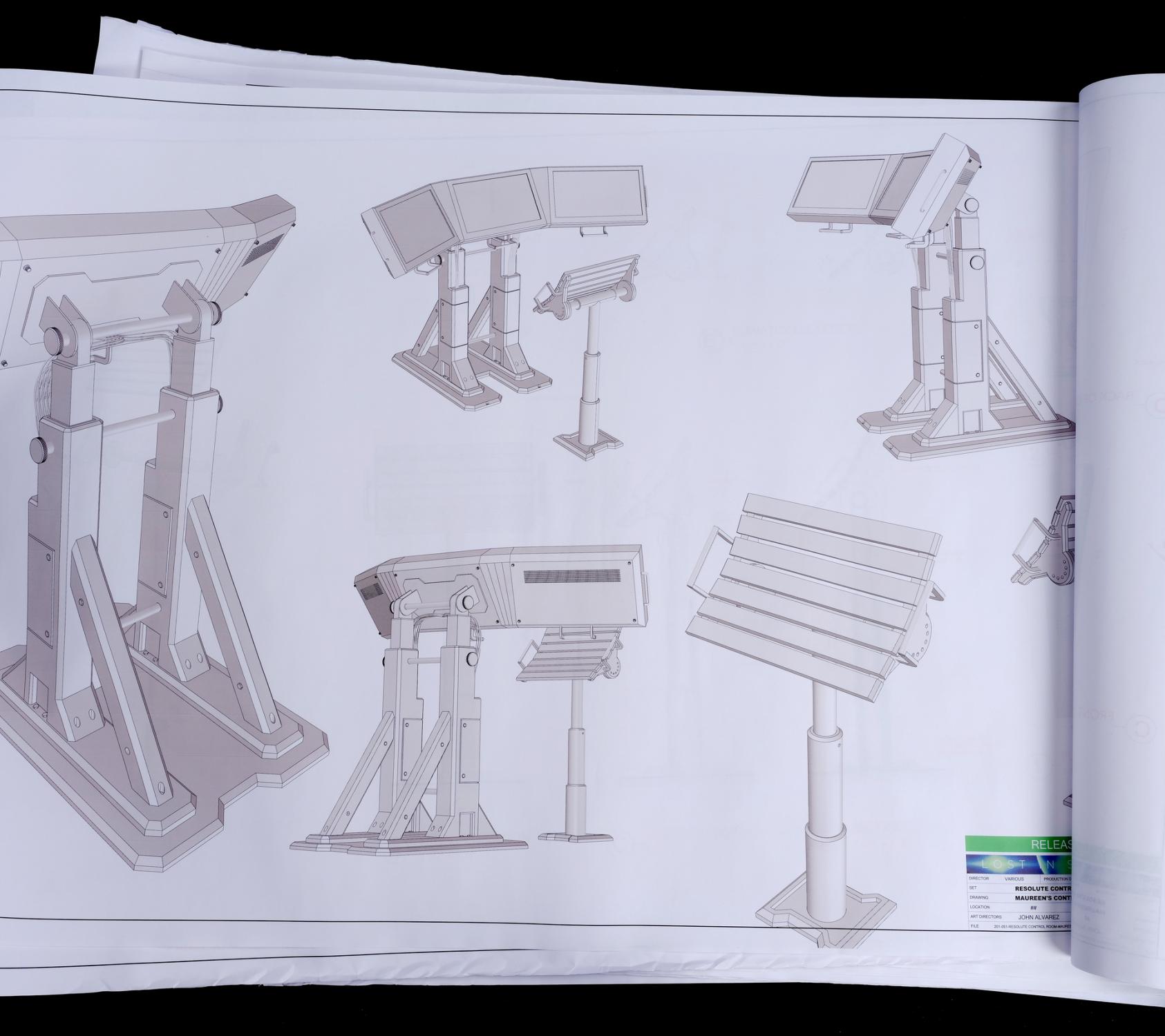 Scene Reference: Blueprints of the Resolute Colony Spaceship's Control Room, Maintenance Pod, and Cargo Hold Room are used by Production for scaling purposes and planning out floorplans in the "Lost In Space" (2018-2021) series.